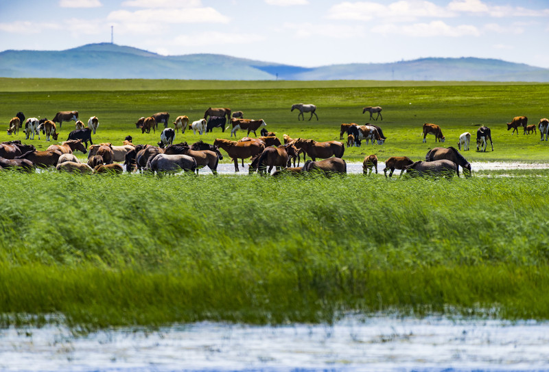 内蒙古的草原面积占全国草原总面积的1/4,被誉为“中国草原的摇篮”,这里有着世界上最为辽阔的草原,如呼伦贝尔大草原、锡林郭勒大草原等,草原上,蓝天白云、绿草如茵,牛羊成群,构成了美丽的画卷。